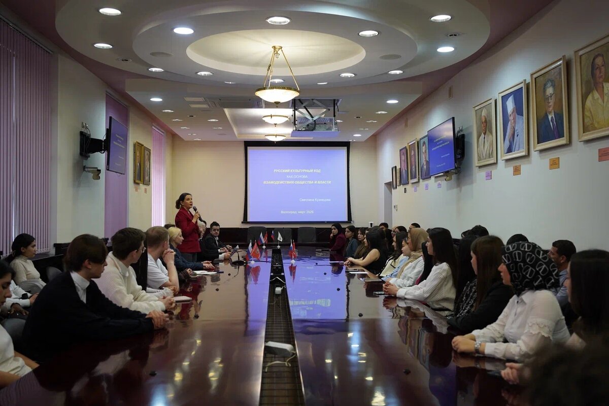 ⚡️Лидер общественного движения «Мы есть Русские» Светлана Кузнецова встретилась со студентами Волгоградского государственного медицинского университета (ВолгГМУ). Говорили о кросс-культурных коммуникациях: как преодолеть различия в менталитетах и эффективно общаться людям разных национальностей? Отметим, что ВолгГМУ находится на втором месте среди российских вузов по численности иностранных студентов. На сегодня их порядка 3000. И если раньше это были преимущественно ребята из Индии и Малайзии, то теперь заметный рост наблюдается среди представителей Ближнего Востока — Египта, Ирана и Иордании. «Нам крайне важно наладить взаимодействие с ними, ввести в нашу систему образования, научив правильно пользоваться электронными ресурсами, да даже правильно заполнять зачётку, — отметил проректор по молодёжной политике и воспитательной деятельности вуза Данил Липов. 🌏Привлечение новых иностранных студентов обусловлено двумя факторами. Во-первых, ведётся сотрудничество с международными рекрутин