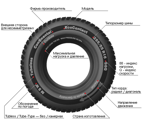 Маркировка грузовых шин содержит важную информацию о характеристиках, назначении и условиях эксплуатации. Основные элементы маркировки включают размеры, индексы нагрузки и скорости, тип конструкции, дополнительные обозначения и другие параметры. Размеры шины Размеры записываются в формате, например, 315/80 R22.5: Пример расшифровки: шина шириной 315 мм, с высотой профиля 80% от ширины, радиальной конструкции, рассчитанная на обод диаметром 22,5 дюйма. Индекс нагрузки (LI) Индекс нагрузки (Load Index) указывает на максимальную массу, которую может выдерживать шина. Значения приведены в технических руководствах. Например: Если у шины два индекса (например, 152/148), это означает разную грузоподъёмность в одинарной и сдвоенной установке. Индекс скорости (SI) Индекс скорости (Speed Index) обозначает максимальную скорость, с которой шина может безопасно эксплуатироваться. Примеры: Для грузовых шин индексы скорости часто ограничены более низкими значениями из-за их специфики. Тип конструкции