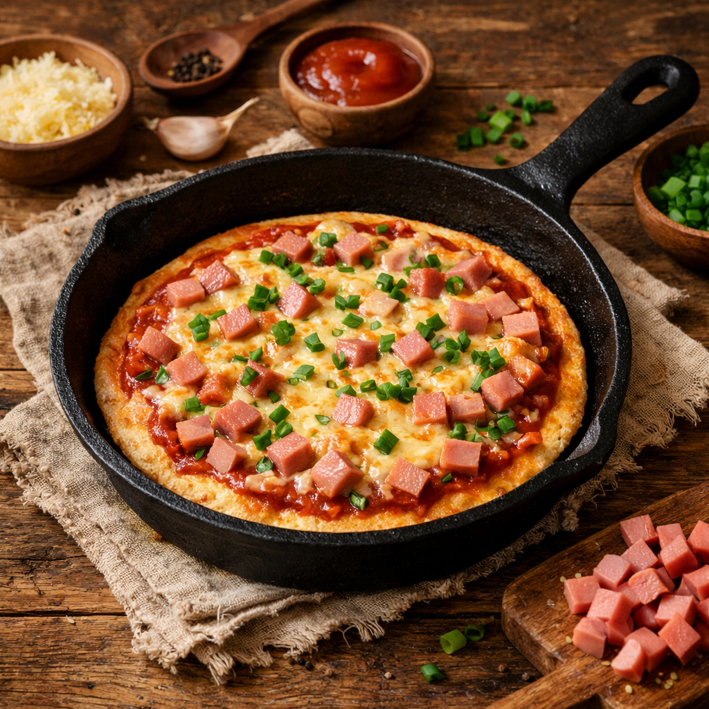 Калорийность примерно 220–260 ккал на 100 г. Быстрое блюдо с белками и жирами.