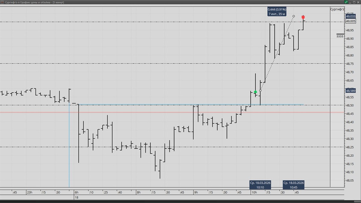▫️ Сургнфгз П +0,9% 📈 Точка входа ( пробой с зак. ) 💰 Риск | Прибыль ( 1к 3 ) Красная линия на графике показывает где поставил стоп ! 🥳 Поздравляю всех, кто заработал !!! 💬 Бесплатный | Чат - ПЕРЕЙТИ #сделки