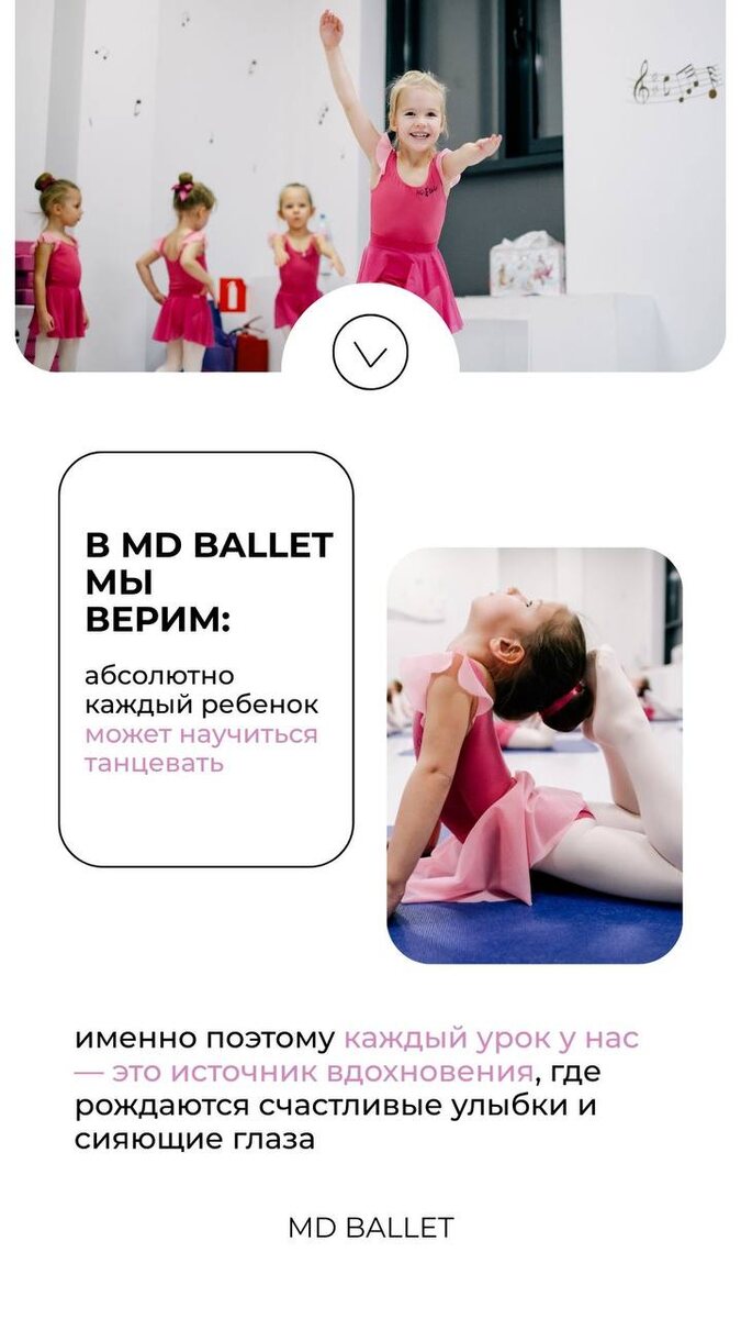 🩰 Именно поэтому мы создали пространство, где каждый может расти и развиваться гармонично Пока ребёнок занимается любимым делом, вы можете быть спокойны: мы окружили его заботой, вниманием и бережным подходом. 🩷 А когда занятие заканчивается, вы видите в глазах не усталость, а тот самый огонь, ради которого всё затевалось.