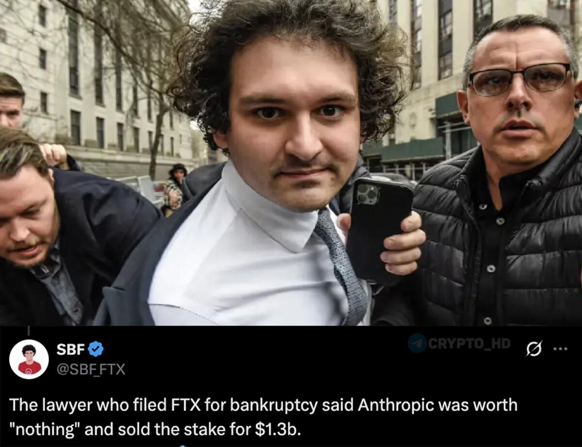 😐 Биржа FTX в 2024 году в рамках процедуры банкротства реализовала 8% акций Anthropic за $1,3b. Сегодня эта доля стоила бы > $30b. Сэм Бэнкман-Фрид: Юрист при продаже заявил, что Anthropic «ничего не стоит». Ранее: - ходатайство о пересмотре дела - FTX не была банкротом - «тюремные записки» Crypto Headlines