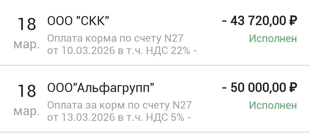 Сегодня мы успешно произвели оплату кормов для наших подопечных двум поставщикам