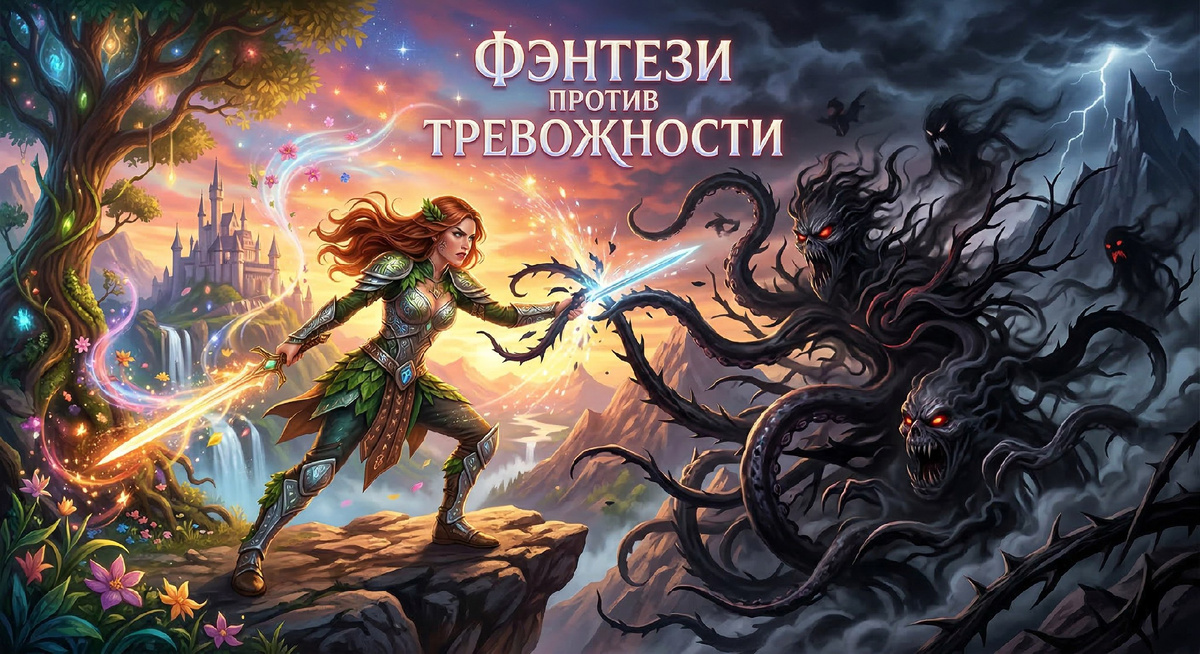 Всем привет, друзья! Сегодня хотел бы написать про то как жанр фэнтези может убрать тревожность. Не буду долго писать о том, что современный мир, да и не только современный как-будто ставит перед собой цель: сделать любого, даже самого стойкого монаха, тревожным и беспокойным человеком, превратить наше сознание и мышление в абсолютный хаос. Это факт. Что касается меня, я всегда видел несколько вариантов убрать тревожность: 1. Вера в Бога (но не фанатичная) 2. Любимый человек 3. Глубокое общение с родственниками и друзьями 4. Занятие музыкой и прослушивание ее же 5. Спорт 6. И вот наконец: писательство. В какой-то момент своей жизни я понял, что перегруз различными мыслями и информацией, которая столь обильно льется из наших любимых соц. сетей и интернета, настолько велик, что нужно куда-то деть его, этот перегруз, иначе произойдет какой-то внутренний взрыв. И я начал просто писать все что накопилось. И да, это очень помогло. Поэтому советую всем попробовать. Выделите 5 минут своей жи