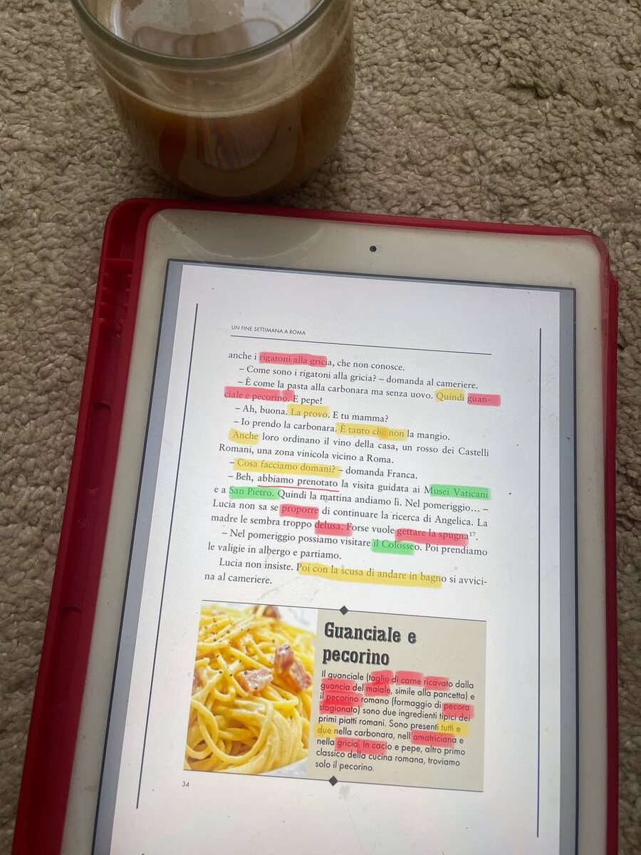 🔴 - то, что я не знаю 🟡 - разговорные фразы, которые я хочу ввести в активный словарный запас 🟢 - культурные места в Риме, про которые я хочу узнать больше из других ресурсов 🔴 подчеркнутое - незнакомая грамматика #методсветофора