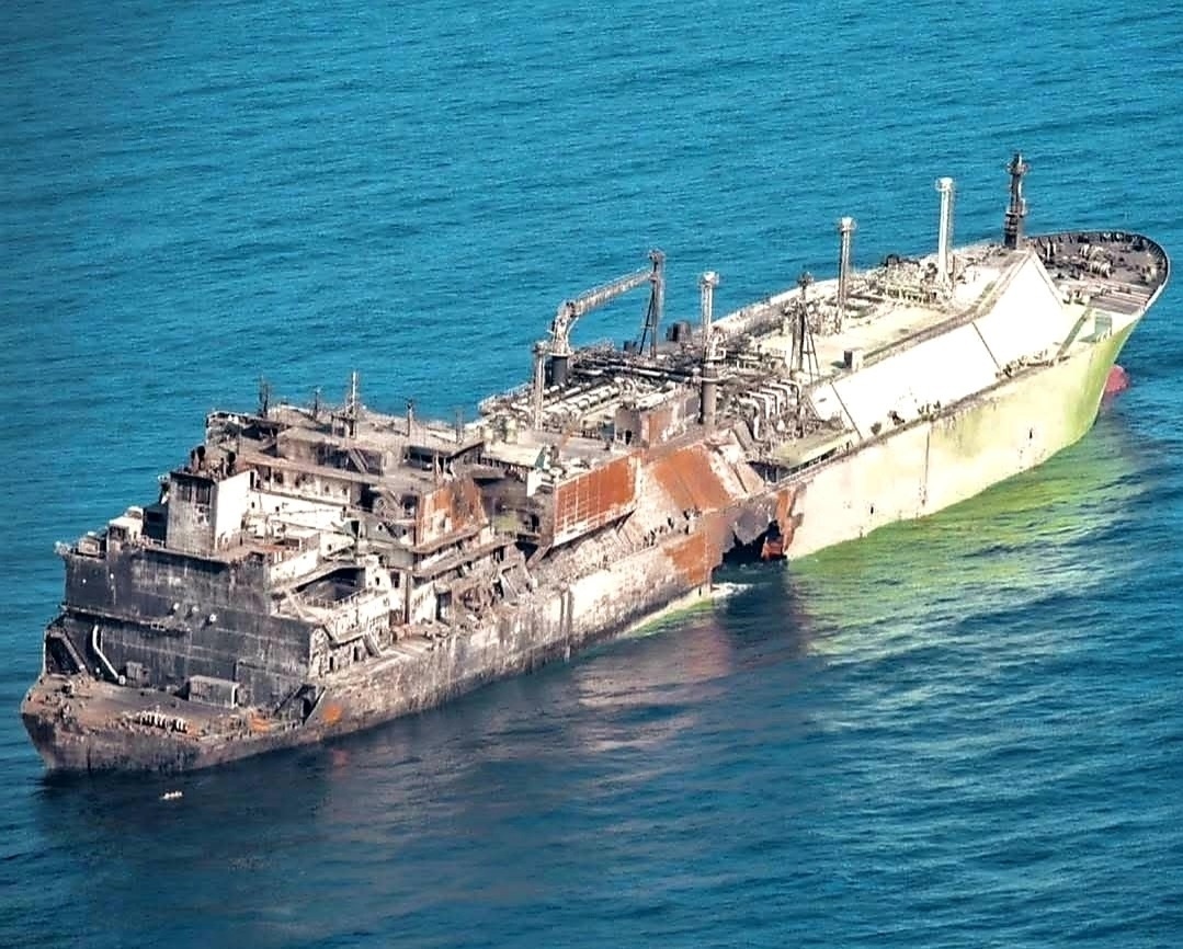 Сгоревший после атаки украинских дронов 4 марта российский газовоз «Арктик Метагаз» уже полторы недели дрейфует без экипажа в Средиземном море. Судно имеет серьезные повреждения: на борту раздаются хлопки, фиксируются выбросы газа, усилился крен, наблюдаются локальные очаги пожара. В бункерных