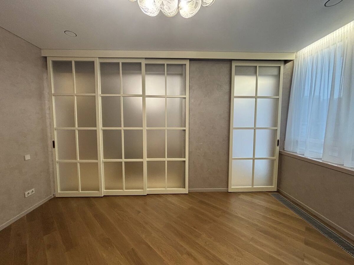 ⬇️ Здесь — перегородки в деревянном профиле с покрытием эмаль, выполненные в едином стиле с матовым стеклом. Обе конструкции отделяют зону кухни, но каждая по-своему решает задачу пространства. Первая перегородка получилась асимметричной — так сложилось из-за особенностей планировки. Справа — одна откатная створка, слева — три. При открытии они аккуратно собираются за стенкой, и проём получается достаточно широким. Вторая перегородка — из двух створок. Более сдержанное решение, которое тоже отлично работает в интерьере и поддерживает общий стиль пространства. Вот такие нестандартные решения тоже реализуем — когда нужно не просто красиво, а ещё удобно и продуманно ❤️