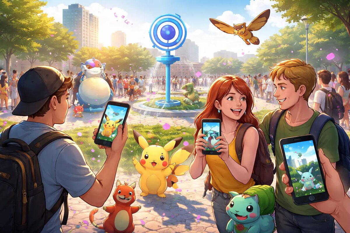 Если вспоминать Pokemon GO образца 2016 года, в памяти всплывают не меню и не настройки. Всплывают сцены. Кто-то стоит у фонтана и быстро водит пальцем по экрану. Кто-то бежит через площадь, потому что «осталось две минуты». На скамейке сидит человек лет сорока и спокойно объясняет школьникам, как работает эволюция. А рядом компания студентов обсуждает, где поблизости еще есть покестопы.