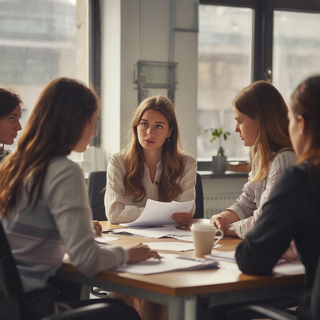 За столом раздались смешки. Все ждали, что скажет новенькая — Марина. Она сидела чуть поодаль, перебирая бумаги, и чувствовала, как взгляды коллег скрестились на ней.