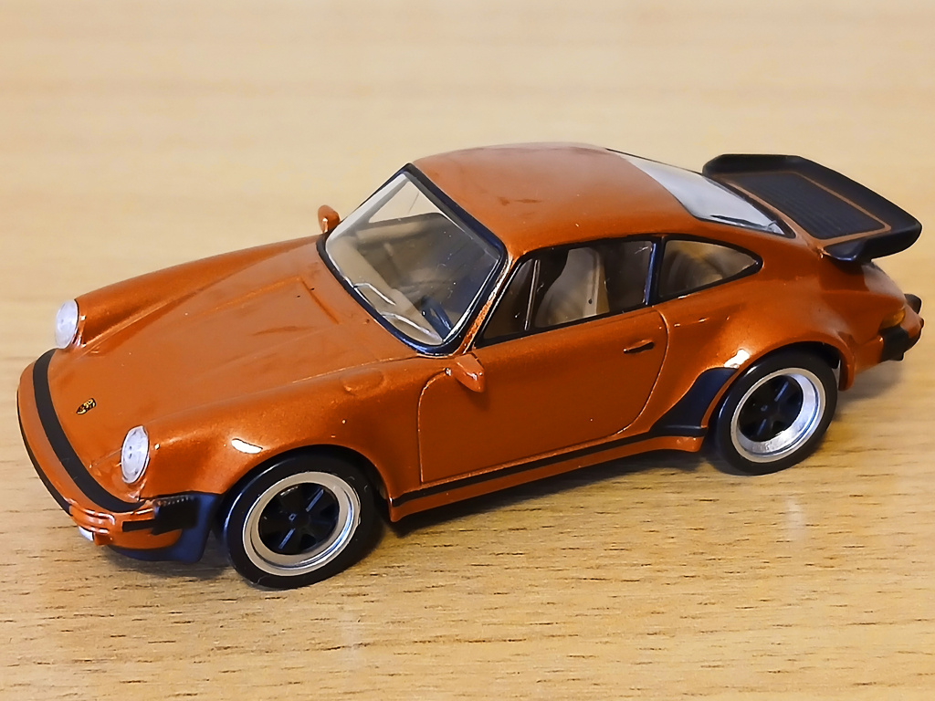 Итак, сегодня у меня в руках очередная модель из тех автомобилей, что представлены в игре Need for Speed: Porsche Unleashed и это Porsche 930 - первый в мире гражданский 911 с турбонаддувом. Вот такая вот красота цвета меди (Copper Metallic). Глядя на модель понимаешь почему Porsche 911 стал иконой в мире классических автомобилей и почему автомобиль является бесспорным флагманом модельного ряда Porsche. Он был на календариках, на постерах, на вкладышах жвачки "Turbo", в сотнях фильмов и в десятке игр. Мечта... На капоте модели фирменный шильдик. Ах, да, если кто не знал, "930" - внутризаводское обозначение автомобиля Porsche 911 Turbo выпуска 1975-1989 годов. Версия 1978 года - по сравнению с предыдущими - подверглась значительной модернизации: - объём двигателя увеличился до 3,3 л. с добавлением интеркулера «воздух-воздух», позволившего увеличить мощность до 300 л. с. (интеркулер - представляет собой теплообменник, выполняющий функцию охлаждения наддувочного воздуха и, как следствие,