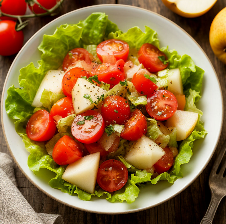 Доброго времени суток мои друзья подписчики и просто заглянувшие на огонек. Сегодня хочу предложить рецепт легкого салатика" Летнее утро" Хоть сейчас и не лето,но салат хорош и в весенний день. Он такой чудесно яркий,что настроение поднимается только от одного взгляда на него. А какой изумительный вкус....Попробуйте.Возможно он станет вашим любимым. Нам потребуется Салат любой -1 пучок Лук красный салатный -1шт Томаты черри -10 шт Груша среднего размера-1 шт Сыр рассольный (брынза,сулугуни,адыгейский ) около 100 гр Масло оливковое. Можно посыпать зеленью Приготовление: Салат нарвать на крупные куски, лук-полукольцами,черри-пополам,грушу и сыр нарезать кубиками. Перемешать и добавить оливковое масло.Интересное сочетание солоноватого сыра и сладкой груши. Приятного аппетита. Спасибо, что дочитали. Всем добра, мира, хорошего настроения и