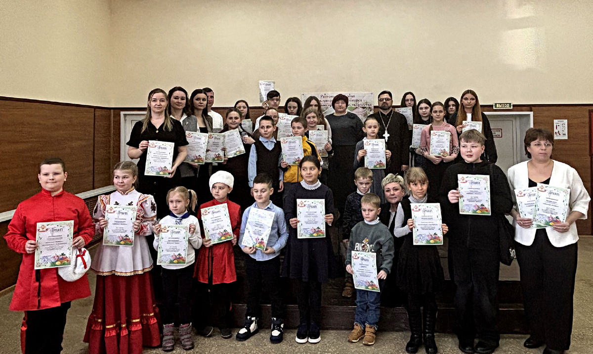 По завершение награждения победителей и участников регионального этапа международного конкурса «Пасхальное яйцо -2026» выступили Артем и Диана Комиссаровы, Русакова Виктория, Бровкина Полина, Самохина Дарья и детский ансамбль «Казачок».