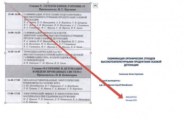 Были представлены три доклада по газификации. И первый доклад по внедрению «Газификация лузги семян подсолнечника высокотемпературными продуктами газовой детонацией» по созданию конкретной опытно-промышленной установки для Заказчика по утилизации отходов. Докладчик должен быть готов к конкретным ответам на задаваемые присутствующими учеными очень и очень непростые вопросы. Так как правило, над многими проектами работают коллективно, то бывает, когда докладчику приходится, обращаться к коллегам по профильным вопросам специализации. Больше всего радует большое количество молодых ученых-докладчиков. Представлен обзор литературы по аллотермической газификации органических отходов в среде перегретых водяного пара и диоксида углерода при атмосферном давлении. Рассмотрены две группы технологий: низкотемпературных (500–1000 ◦C) и высокотемпературных (выше 1200 ◦C). Показано, что существующие технологии низкотемпературной газификации характеризуются относительно низким качеством синтез-газа, низкой эффективностью, сложностью управления составом газа и низким выходом синтез-газа. Основные усилия по улучшению таких технологий направлены на предварительную обработку сырья и дополнительную обработку полученного синтез-газа, а также на повышение реакционной способности сырья с помощью катализаторов. В отличие от низкотемпературной газификации высокотемпературная плазменная газификация обеспечивает высококачественный синтез-газ, высокую эффективность процесса, простое управление составом газа и высокий выход синтез-газа. В качестве более эффективной альтернативы предлагается и демонстрируется экологически чистая технология детонационных пушек для газификации органических отходов. Ключевые слова: органические отходы; аллотермическая газификация; водяной пар; диоксид углерода; детонационная пушка; ультраперегретый пар.