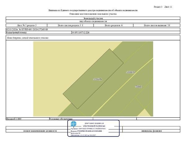 Название: земельный участок с кадастровым номером 64:05:130712:226, площадью 2000 кв.м, с целью использования – «Для ведения личного