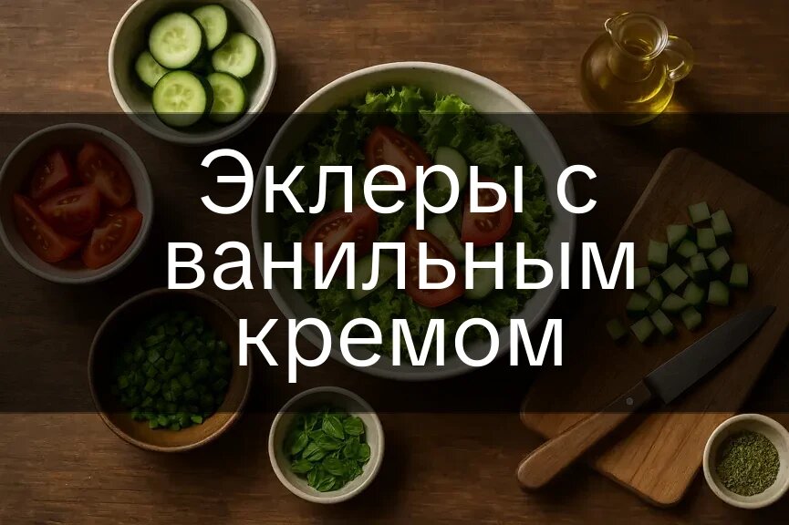 Эклеры с ванильным кремом изумляют своим нежным вкусом и воздушной текстурой. Это угощение идеально подходит для утреннего чаепития, дружеской вечеринки или романтического ужина. Каждый кусочек наполнен сладким ароматом ванили, который в сочетании с хрустящей оболочкой дарит настоящее наслаждение. Порций: 2 Время: 90 мин Сложность: средне На блюдо: 900 ккал, 16 г белков, 52 г жиров, 90 г углеводов На 100 г: 150 ккал, 2.7 г белков, 8.7 г жиров, 15 г углеводов На порцию: 450 ккал, 8 г белков, 26 г жиров, 45 г углеводов Читать другие наши рецепты на Receptario.ru
