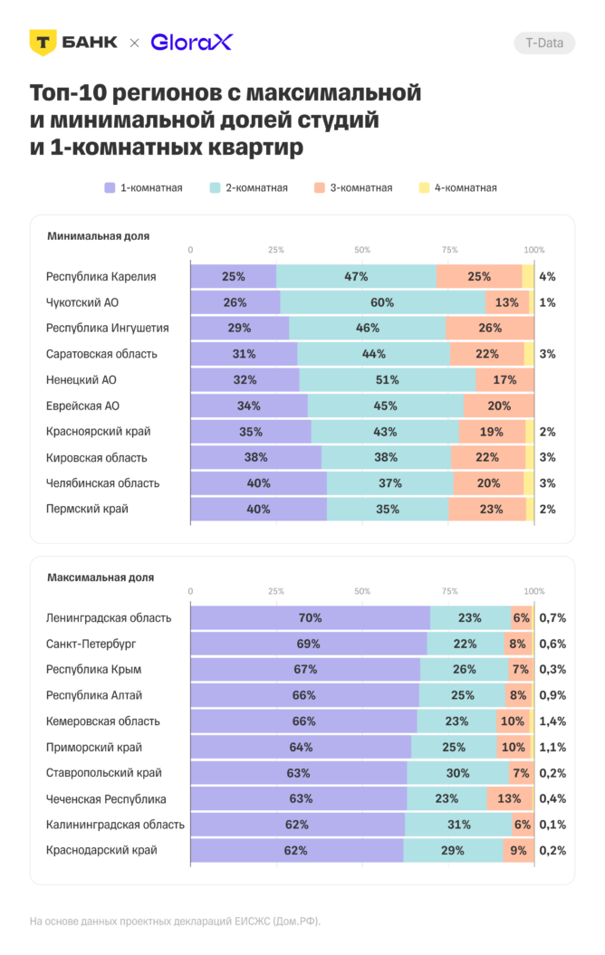 На российском рынке новостроек сформировалась устойчивая тенденция: покупатели чаще выбирают квартиры меньшего метража, чем предусмотрено в проектах застройщиков. Об этом говорится в исследовании аналитического проекта T-Data Т-Банка и девелопера GloraX. По данным аналитиков, средняя площадь квартир, проданных на первичном рынке в 2025 году, составила 46,8 квадратного метра. В то же время средняя площадь жилья, которое строилось или было заявлено к строительству в течение года, достигала 49,2 квадратного метра. Таким образом, реальный спрос оказался ниже проектных параметров примерно на 2,4 квадратного метра. Эксперты считают, что покупатели принимают максимально прагматичные решения и в первую очередь ориентируются на доступность сделки. При выборе квартиры россияне оценивают не только стоимость квадратного метра, но и общий бюджет покупки, условия ипотечного кредитования и размер ежемесячного платежа. В этих условиях более компактные квартиры оказываются более доступными. Похожая сит
