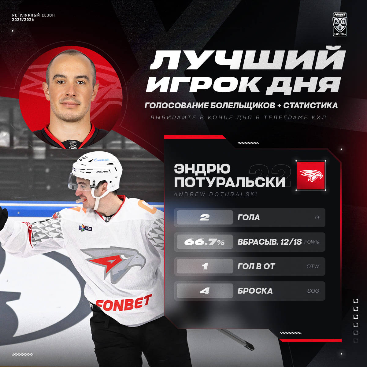 Дубль, гол в ОТ — ничего необычного, просто еще один рабочий день лучшего снайпера «Авангарда» Эндрю Потуральски 🦅