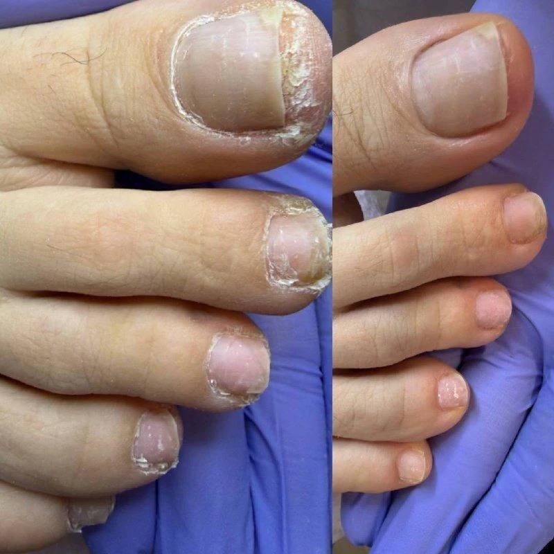 "У девочки псориаз, на ногах бывает обострение, все пересыхает, посмотрим динамику. Делала первый раз ей"
