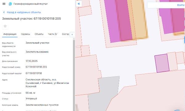 Название: Земельный участок, относящейся к категории земель населенных пунктов с кадастровым номером 67:19:0010118:205, площадью 66