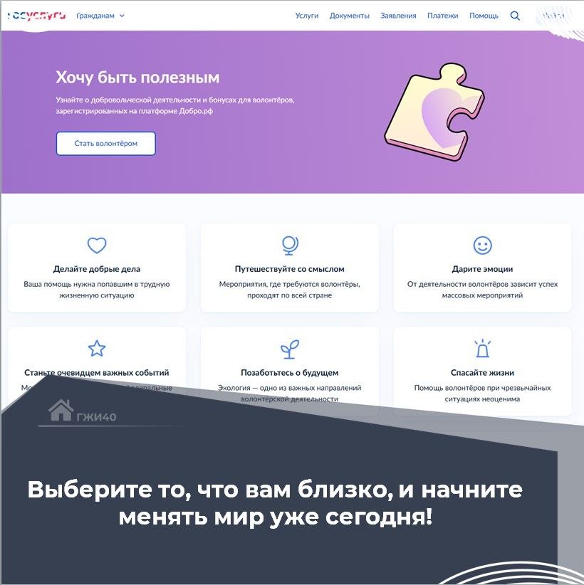 ! ✨ Что можно делать в качестве волонтёра? * помогать в приютах для животных; * участвовать в экологических акциях; * проводить мастер-классы и занятия для детей; * оказывать помощь пожилым людям; * участвовать в благотворительных мероприятиях и многое другое. Стать волонтером можно через госуслуги, на портале есть раздел о добровольчестве (vk.cc/cy6zZJ) Там вы узнаете: - Как стать волонтёром; - Какие бывают направления волонтёрской деятельности; - Какие есть сервисы для волонтёров; - Какие права есть у волонтёров и много другой полезной информации. #Тема_дня_волонтерство