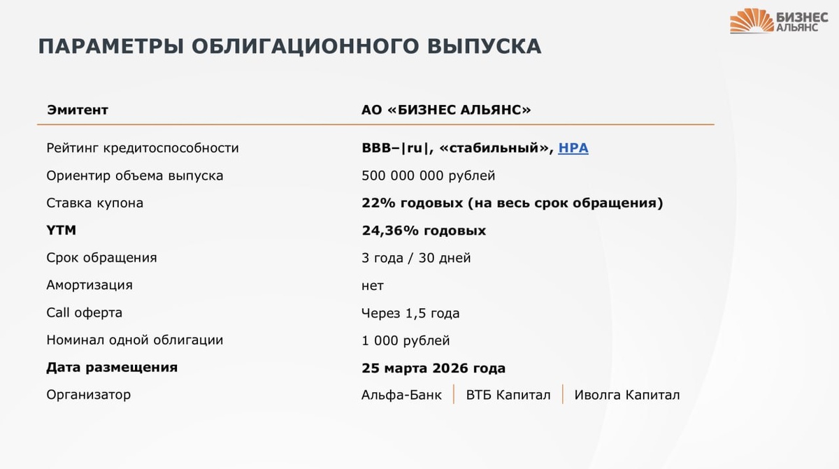 📳АО БИЗНЕС АЛЬЯНС объявляет о новом размещении облигаций! 📳 Дата размещения нового выпуска: ⏰ 25 марта