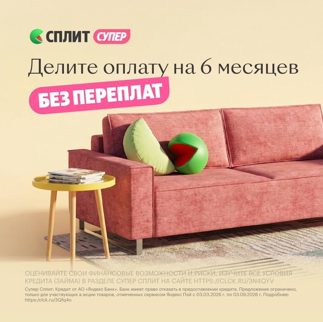 Покупайте сейчас, а платите потом — в Яндекс Супер Сплит. Делите оплату на 6 месяцев без переплат. Платежи будут вноситься постепенно: 0 ₽ в день покупки, остальное — раз в месяц, по графику. Акция до 03.09.2026. Количество товаров ограничено. Подробнее по телефону +7 (800) 500-41-80 или на сайте: https://clck.ru/3SamrP