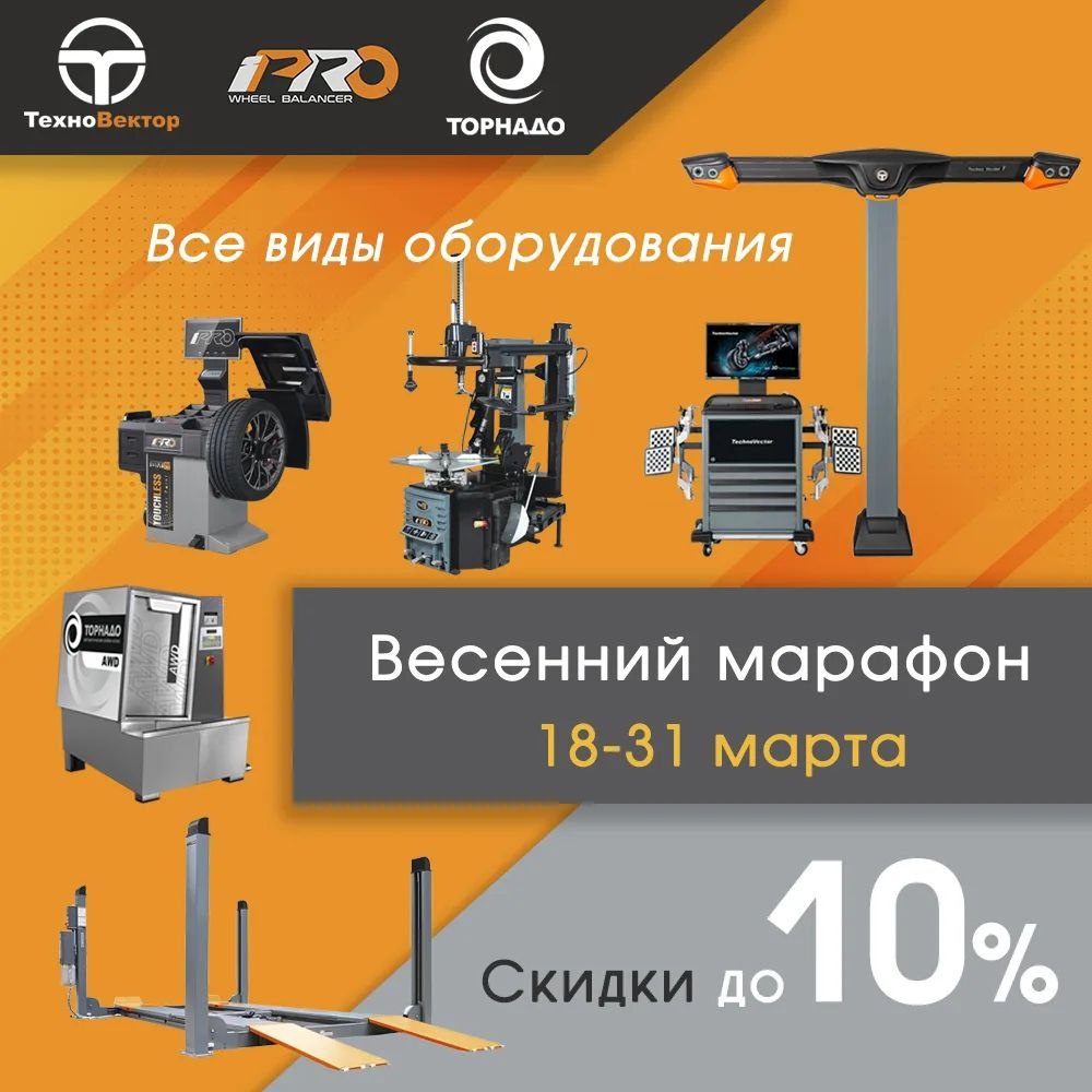 Скидки. Старт! 🚀 Компания Технокар запускает «Весенний марафон»! 🔥С 18 по 31 марта 2026г сезонные скидки до 10% действуют на все автосервисное оборудование ТехноВектор, iPRO и Торнадо. В "Весеннем марафоне" участвуют: • Стенды сход-развала ТехноВектор -5% • Шиномонтажные станки iPRO -10% • Балансировочные станки iPRO до 10% • Подъемники автомобильные -10% • Мойки колес Торнадо -5% 👉Узнайте условия акции на нашем сайте. Посмотреть цены и сделать заказ можно в каталоге.