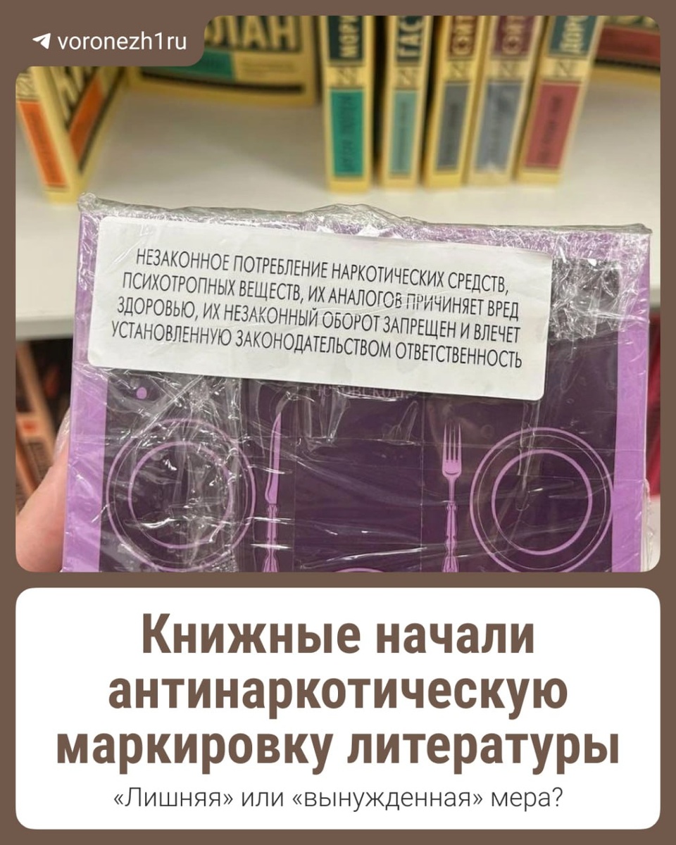 Теперь особые пометки должны быть на всех произведениях, содержащих упоминания наркотических средств и психотропных веществ. В специальном перечне уже больше 1000 книг. Как выглядит нововведение и что думают продавцы и читатели, рассказываем в карточках наших коллег из @voronezh1ru ⬆️ Как относитесь к такой маркировке? 👍 — всё правильно 😡 — это уже слишком 🗿 — без разницы, все равно не читаю