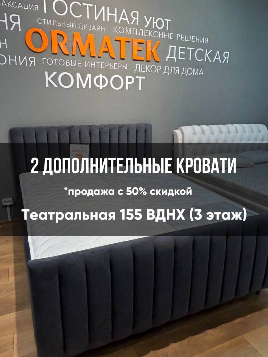 🕵️♂️ Друзья, пока мы готовились к тотальной ликвидации позиций с салона на ВДНХ, случилось неожиданное. Среди коробок, которые упакованы и ждут доставки, обнаружились две новые кровати от ORMATEK, которые тоже хотят уйти в хорошие руки. Они ждали своего часа. И теперь, как и всё в нашем салоне, они участвуют в ликвидации с максимальной скидкой 50%. На сегодняшний день продана половина ассортимента, в наличии остались считанные позиции кроватей. 🔥 Две дополнительные кровати ORMATEK. 🔥 Скидка 50% — как и на весь ассортимент. 🔥 И да, на них тоже распространяется правило "забрать с салона". Ждём всех, кто хочет успеть урвать ту самую модель, которой уже нет в наличии у других. 📍 Где: Театральная, 155, ВДНХ, 3 этаж. 📅 Когда: До последнего проданного матраса и кровати. Приходите смотреть вживую. Такое добро просто обязано найти своих покупателей!😊
