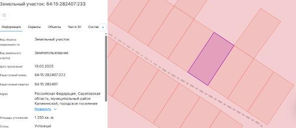 Название: Земельный участок с кадастровым номером 64:15:282407:233, площадью 1250 (одна тысяча двести пятьдесят) кв.м, расположенного по