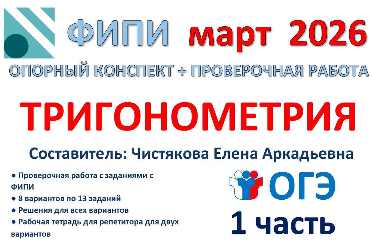 Если вы брали материал этот материал ранее, то в вашей папке лежит промокод. 🆗ОГЭ (1 часть) Проверочная работа "Тригонометрия" 📥 Скачать: extramath.ru/p/20055 🔹Проверочная работа состоит из трех PDF файлов: - для учителя Проверочная работа (8 вариантов по 13 заданий); - тетрадь для репетитора со свободным местом для решения (2 варианта); - полное решение, таблица с ответами, критерии оценивания. 🔹Задания №1-6 может выполнить ученик 8 класса после изучения главы 8, §4, п.78-75 учебника Атанасяна 2023. 🔹Задания №7-13 может выполнить ученик 9 класса после изучения главы 12, §1-2, п.100-107 учебника Атанасяна 2023. 👜Магазин дидактических материалов для уроков математики: extramath.ru 📚Таблица КТП: clck.ru/3RDXqk