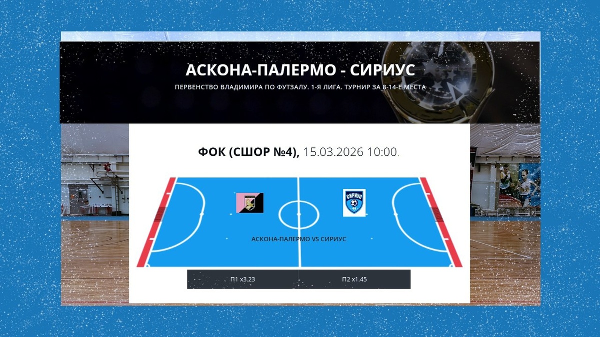 Первенство Владимира по футзалу. 1-я лига. Турнир за 8-14-е места. 15.03.2026 г. Аскона-Палермо - Сириус 3:7 (1:3) Обзор