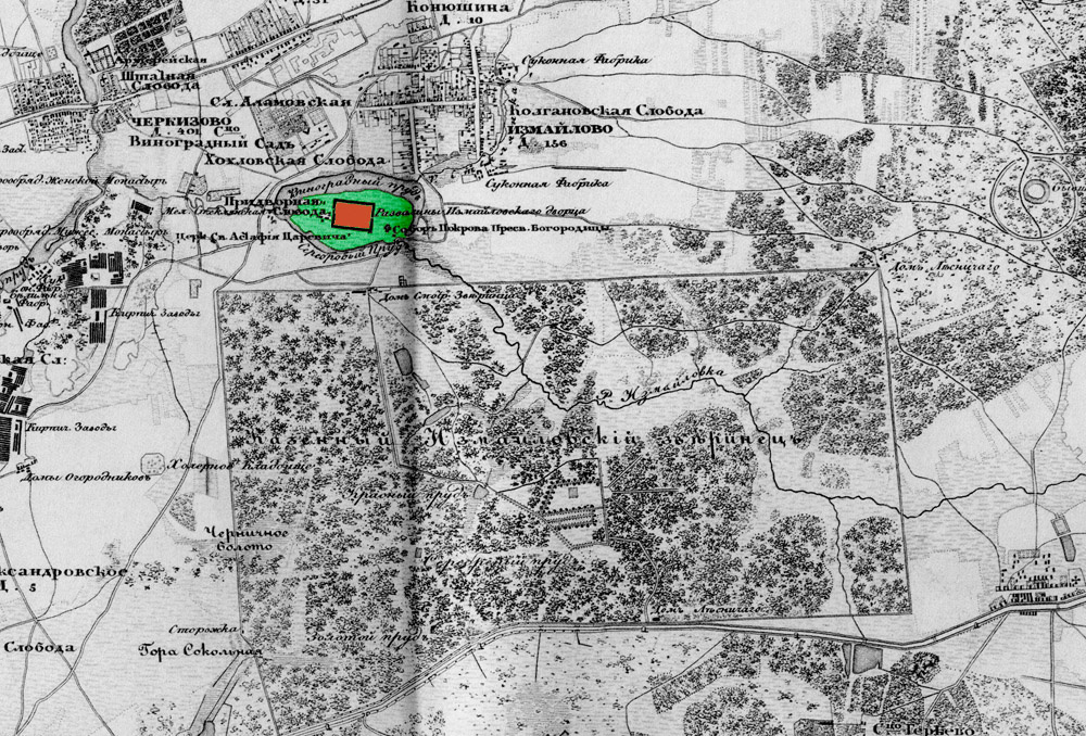 📷 Фото 1: Старая карта Москвы с селом Измайлово (XVII–XVIII век).