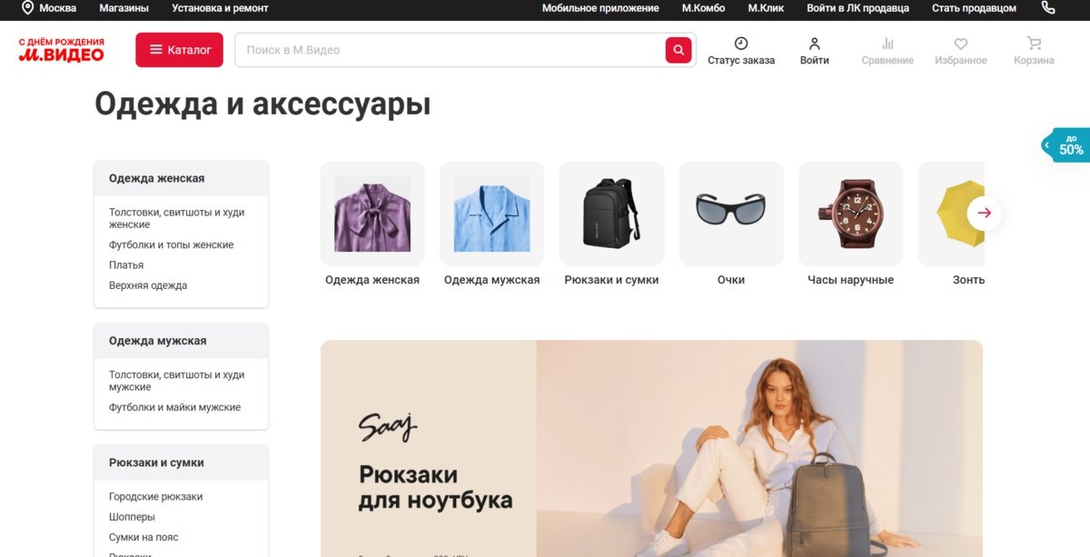 «М.Видео» запустил продажу одежды и аксессуаров