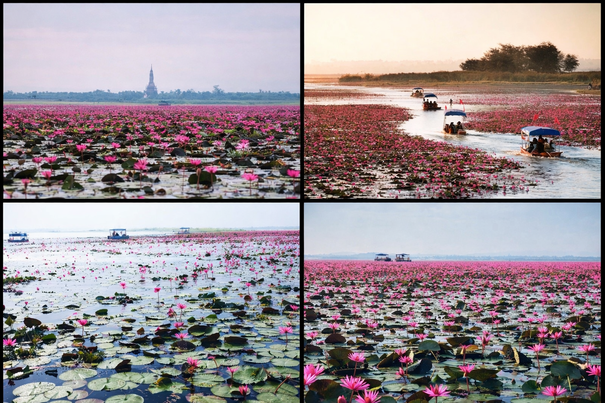 Море красных лотосов наиболее эффектно в прохладный сезон, обычно с конца года до февраля. Именно в этот период цветение особенно пышное. Лучшее время суток - раннее утро, когда цветы раскрыты, а свет остается мягким. Тем, кто хочет увидеть водоем в его самом знаменитом виде, стоит планировать поездку именно под сезон и под время рассвета. Это одно из тех мест, где час прибытия буквально решает все впечатление.