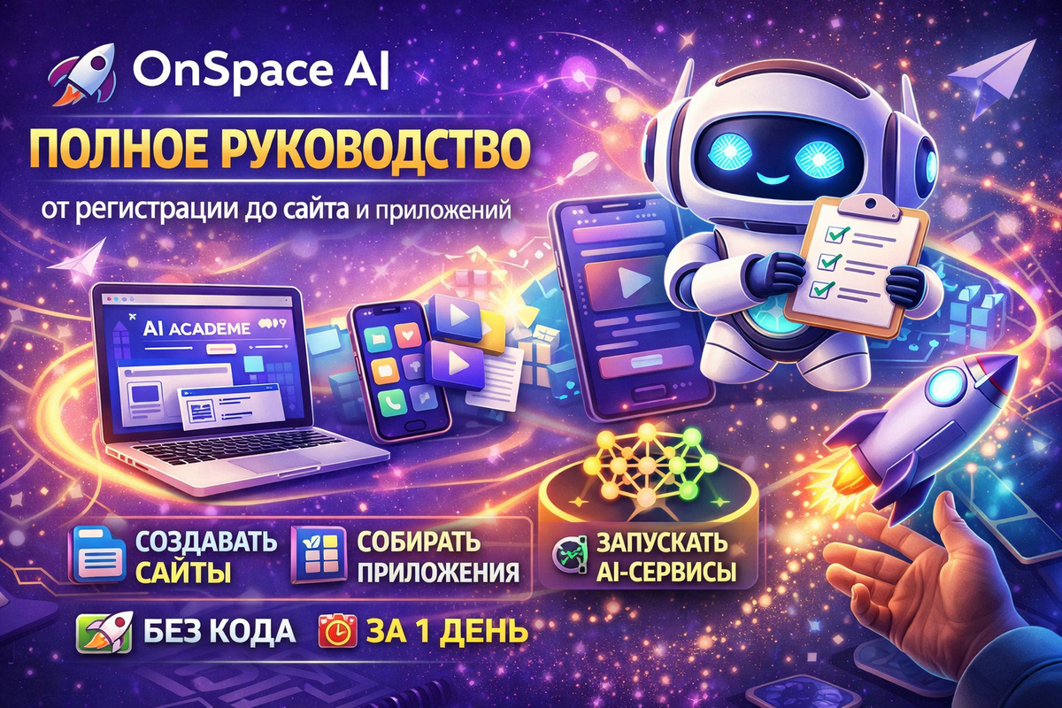 🔹 Что такое OnSpace AI OnSpace AI — это платформа, которая позволяет создавать сайты, приложения и AI-сервисы без кода, просто описывая идею текстом. 👉 Платформа сама генерирует: дизайн (UI), логику, базу данных, backend, публикацию. По сути: ты пишешь — AI строит продукт. 🔹 Шаг 1. Регистрация Перейди на сайт: https://www.onspace.ai/invite/6V98b4r
