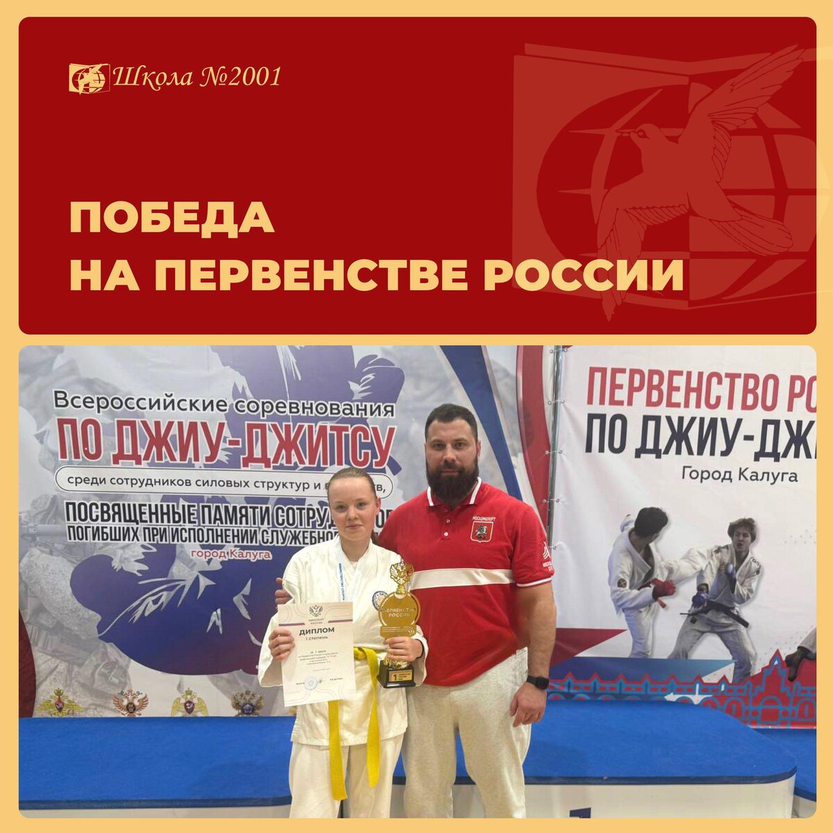 ! В Калуге прошло первенство России по джиу-джитсу среди юношей и девушек до 14 лет. Наши спортсмены показали отличный результат! В копилке команды золотая и бронзовая медали. Соревнования собрали участников более чем из 20 регионов страны. Особенно радует, что обладательница золотой медали получила путёвку на первенство мира. Гордимся ребятами и желаем им новых ярких стартов и уверенных побед! #ДОНМ #Школа2001 #ТалантливыеДетиМосквы Все новости и события Школы №2001 — в нашем канале в МАХ
