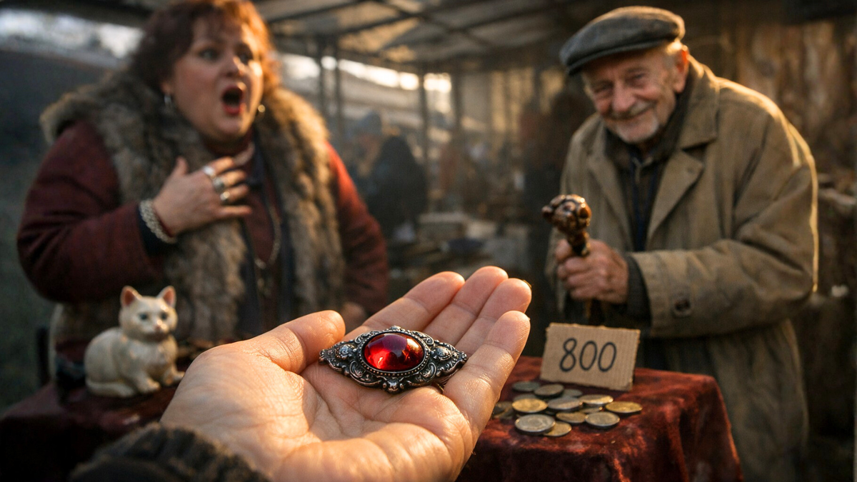 Вроде мелочь, а сердце до сих пор отзывается. Цена на ценнике, блошиный рынок, старик с палочкой, на которой жена вырезала розу. И женщина в сером пальто, которая знает: ценность человека не в пуговицах.