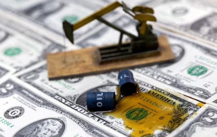 На иллюстрации, сделанной 6 июня 2023 года, изображены нефть, миниатюрные модели нефтяных бочек, нефтяной насос и банкнота доллара США. REUTERS/Dado Ruvic