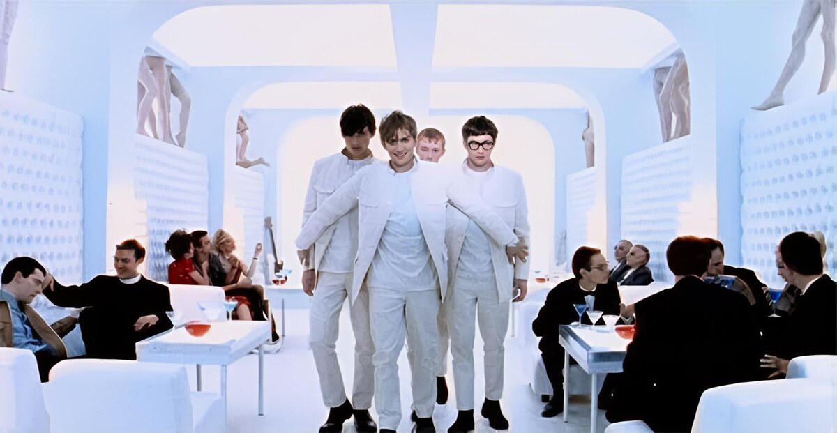 Дэймон Албарн с темной подводкой для глаз по-настоящему вживается в роль Алекса ДеЛарджа, главного героя фильма 1971 года «Заводной апельсин», в клипе Blur на песню «The Universal», снятом по мотивам знаменитого фильма Стэнли Кубрика. Коллеги Албарна по группе показывают роль банды «дроугов» Алекса, выступая в «молочном баре».