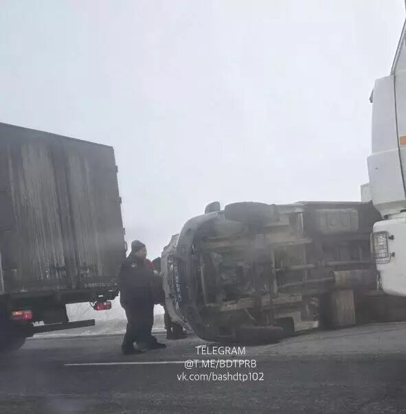 В Башкирии на трассе опрокинулась полицейская машина