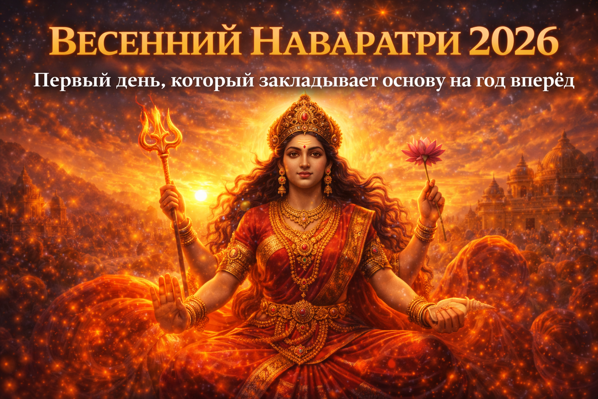 Воздух становится мягче. Солнце задерживается дольше. В природе начинается движение. Весна - время не только таяния снегов, но и внутреннего пробуждения. И именно в этот период, 19 марта 2026 года, наступает момент, который индийская традиция считает дверью в новое творение. Начинаются девять ночей Богини. Весенний Наваратри. И первый день здесь - не просто формальность. Это корень, на котором вырастет всё остальное. 🟢 Прежде чем мы перейдём к подробному описанию данной темы, обязательно загляните в наш телеграм-канал и группу в ВК: