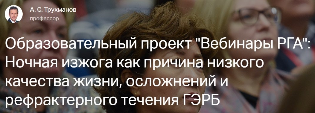 Завтра, 19 марта в 15:00 (МСК) будем ждать вас на вебинаре РГА! 🔴 РЕГИСТРАЦИЯ! 🕒 15:00 Ночная изжога как причина низкого качества жизни, осложнений и рефрактерного течения ГЭРБ 🎤 Александр Сергеевич Трухманов, заслуженный врач РФ, доктор медицинских наук, профессор кафедры пропедевтики внутренних болезней, гастроэнтерологии, гепатологии, руководитель лаборатории функциональной диагностики желудочно-кишечного тракта клиники пропедевтики внутренних болезней, гастроэнтерологии, гепатологии им. В.Х. Василенко Первого МГМУ им. И.М. Сеченова, Главный Ученый секретарь РГА 🖥 УЧАСТВОВАТЬ! 📲 РГА в MAX