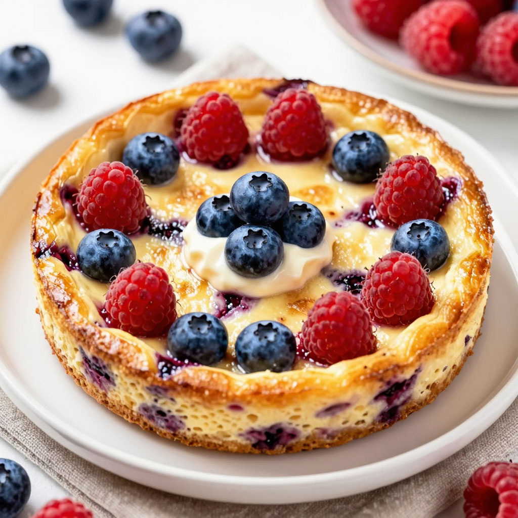 Ингредиенты: творог — 200 г; яйца — 2 шт.; ягоды (малина, клубника, смородина и т. д.) — 100 г; ванилин — на кончике ножа; соль — по вкусу. Приготовление: Отделите белки от желтков. Белки взбейте до устойчивых пиков. Желтки смешайте с творогом и ванилином. Аккуратно введите взбитые белки в творожную массу. Добавьте ягоды, перемешайте. Выложите смесь в форму и запекайте в духовке при 180 °C около 30 минут до золотистой корочки. БЖУ на порцию (1/4 запеканки):калории: ~150 ккал; белки: 12 г;жиры: 5 г; углеводы: 10 г. Секрет: для диетического варианта используйте обезжиренный творог и исключите сахар, добавив вместо него стевию или мёд в небольшом количестве.