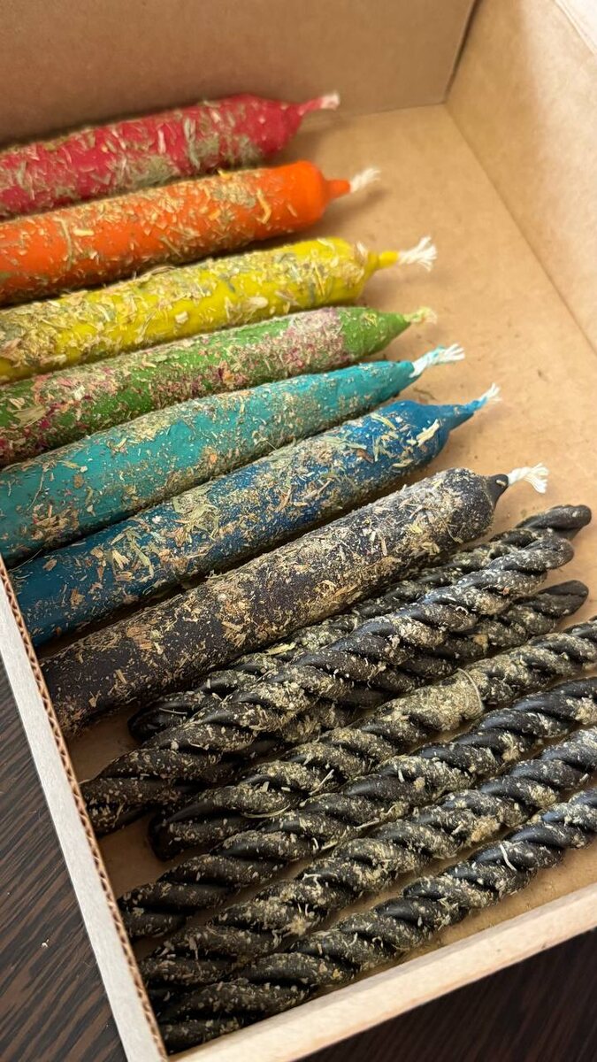 А для тех, кто увидел блокировки по чакрам и хочет привести их в баланс - я создала такой набор свечей из натурального воска