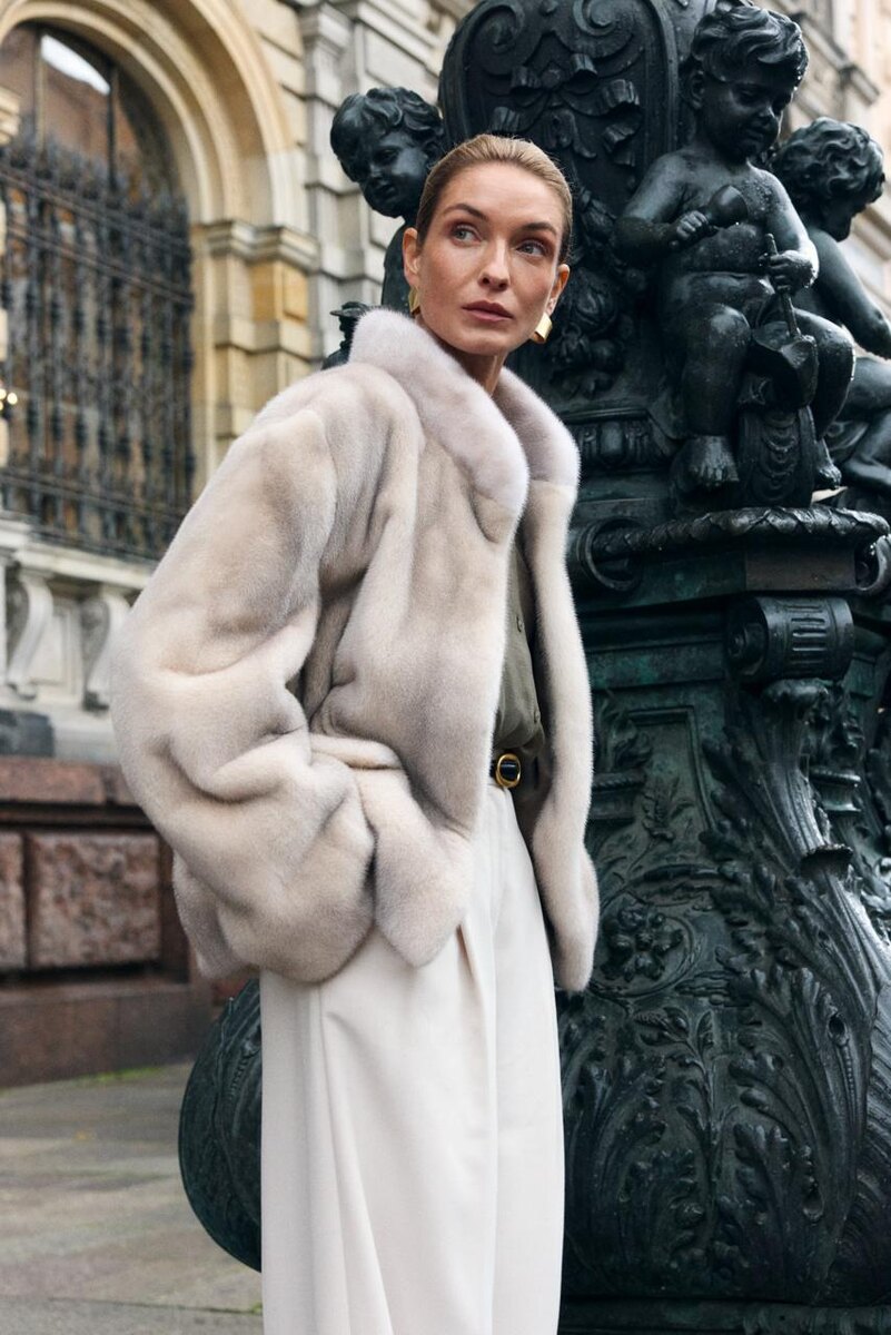 Полупальто из меха норки с воротником-стойкой и кулиской — современное прочтение классической модели, в которой сочетаются лёгкость и