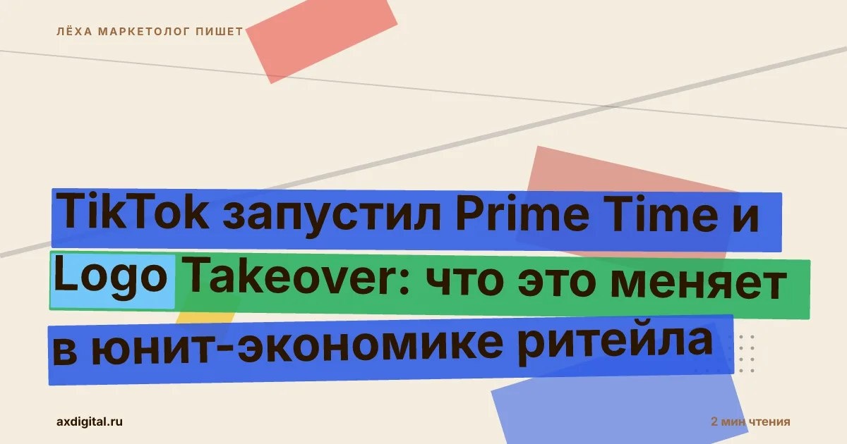 TikTok представил два новых рекламных инструмента для ритейла и e-commerce: Prime Time и Logo Takeover. Для бизнеса, работающего с импульсным спросом, это изменение в логике охватного размещения. Разбираем механику и считаем последствия. Что произошло Prime Time — инструмент последовательного показа. Один пользователь видит до трёх видеороликов одного бренда в течение 15-минутного окна. Формат работает по принципу нарративной цепочки: первый ролик — знакомство, второй — аргумент, третий — призыв к действию. Logo Takeover — надстройка над форматом TopView. Бренд получает момент запуска приложения: три секунды кобрендинга с логотипом TikTok, затем переход в стандартный TopView. По данным компании, инструменты ориентированы на усиление присутствия в ритейл-сегменте.…