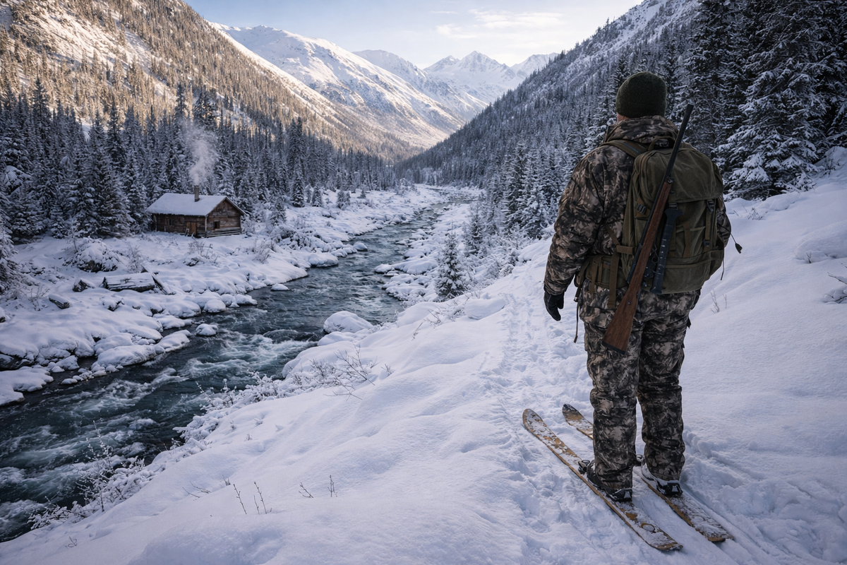 Зимой в горах тишина особенная. Когда выпадает глубокий снег и перевалы заносит метелями, многие дороги исчезают, а реки постепенно покрываются толстым льдом. В такие месяцы некоторые места становятся почти полностью отрезанными от мира. Именно там и стоят старые таёжные зимовья — маленькие избушки, где промысловики живут неделями, а иногда и целую зиму. Одно такое зимовье стояло у верховья горной реки, среди густого кедрового леса. Избушка была небольшая, но крепкая — сложенная из старых лиственничных брёвен, потемневших от времени. Крыша была покрыта толстой корой и мхом, а из трубы почти всегда шёл тонкий дым. Здесь жил промысловик Иван. Он пришёл сюда в начале зимы, когда снег только начал ложиться на горные склоны. Теперь же вокруг лежали глубокие сугробы, а тропы к перевалам были занесены ветром. Ближайшая деревня находилась далеко, за несколькими хребтами. Здесь человек оставался один на многие недели. Утро в зимовье начиналось рано. Ещё до рассвета Иван подбрасывал дрова в печк