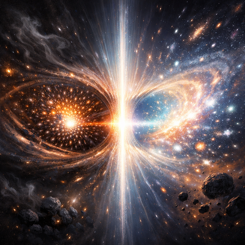 Я хотел бы продолжить разъяснения, задавая вопрос, который не задан – предложенная схема Пространства-Времени меняет некоторые кардинальное понимания, доминирующие сегодня в конвенциональной науке, в частности понимание Тёмной Материи и Тёмной Энергии. Получается, что их… не существует? Ведь если процесс расширения и сжатия Вселенной обеспечивает само Пространство-Время, то для объяснения его Тёмная Материя и Тёмная Энергия не нужны? Следовательно, и у физики, и у математики были изначально неверные предпосылки?