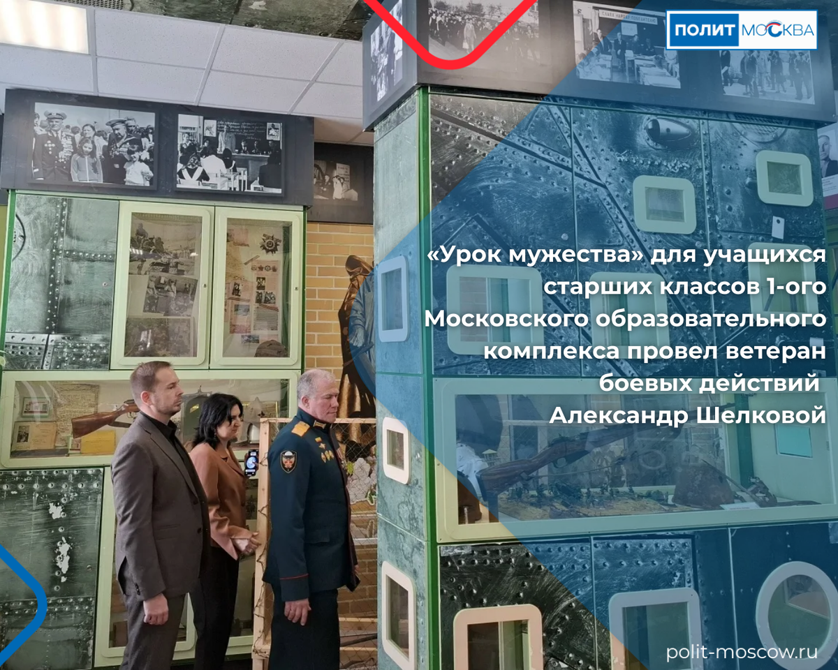 «Урок мужества» для учащихся старших классов 1-ого Московского образовательного комплекса провел ветеран боевых действий Александр Шелковой